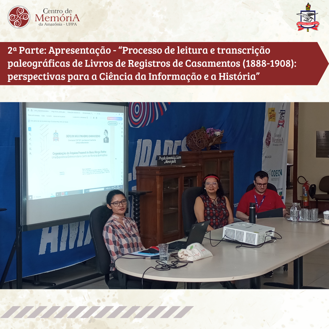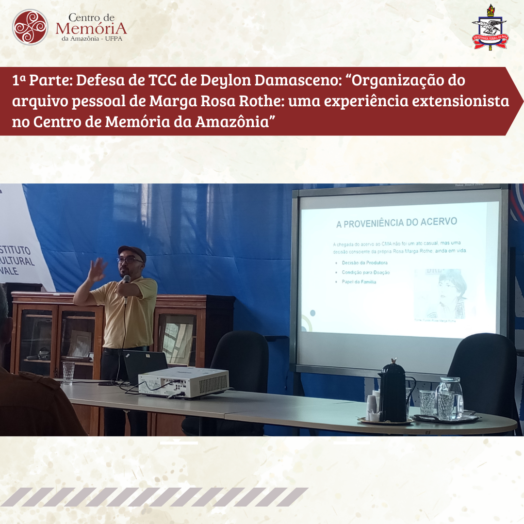No dia 12 de setembro, tivemos o evento "Práticas extensionistas da Faculdade de Arquivologia da UFPA no contexto do Centro de Memória da Amazônia (2024-2025): resultados iniciais". Dividido em duas partes, primeiramente com a defesa de Trabalho de Conclusão de Curso de Deylon Max Pinheiro Damasceno, intitulado "Organização do arquivo pessoal de Marga Rosa Rothe: uma experiência extensionista no Centro de Memória da Amazônia", acerca da organização do acervo de Rosa Marga Roth, pastora luterana e importante ativista na luta contra a Ditadura Militar. A banca foi composta pela orientadora Iane Batista, e os professores Elisângela Silva da Costa e Gilberto Cândido. Em seguida, a apresentação de nome "Processo de leitura e transcrição paleográficas de Livros de Registros de Casamentos (1888-1908): perspectivas para a Ciência da Informação e a História", que contou com os professores Iane Batista, Gilberto Cândido e Tamara Farias. Tratou-se da devolutiva de um projeto de extensão da Faculdade de Arquivologia com o Centro de Memória da Amazônia, acerca de livros de casamento. Uma excelente apresentação e palestra dos envolvidos!