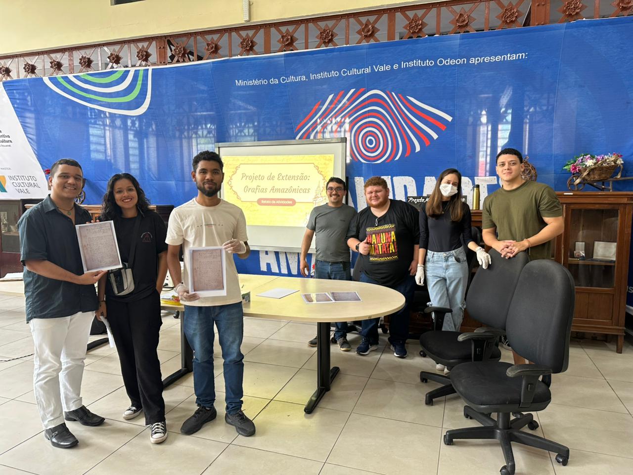 O projeto Grafias Amazônicas desenvolveu mais uma ação de pesquisa, ensino e extensão no Centro de Memória da Amazônia, no dia 25 de março de 2026. O projeto é desenvolvido pela Profª. Drª. Iane Batista, da Faculdade de Arquivologia da UFPA, bolsistas e a Profª. Drª. Marley Silva, do IFPA. Os alunos da graduação de História do IFPA e membros puderam conhecer o acervo judicial do CMA, apreciaram os resultados do projeto Grafias Amazônicas e desenvolveram a leitura dos documentos. Um momento fértil de trocas e aprendizados.